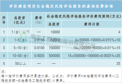 社會穩定風險評估咨詢取費可參考地方收費標準,如上海市地方標準——《上海市重點建設項目社會穩定風險評估咨詢服務收費暫行標準》(滬發改投〔2012〕130號),以估算總投資額為計費基數,根據建設項目不同的性質、內容和所處區域,采取按估算投資額分檔定額計費。