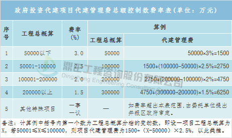 В соответствии с « Уведомлением о выпуске « Положения об управлении расходами на строительство капитальных проектов» (Financial Construction [2016] 504), созданные (или санкционированные) правительством и созданные правительственными тендерами от имени сформированных проектов, плата за управление строительством утверждается финансовым отделом того же уровня в соответствии с содержанием и требованиями представительного строительства и включается в стоимость строительства проекта в соответствии со стандартом платы за управление строительством, который не выше, чем это предусмотрено в настоящих положениях. Проекты, осуществляющие управление от имени системы, как правило, не могут одновременно включать расходы на управление строительством от имени компании и расходы на управление строительством проекта, которые действительно должны происходить одновременно, сумма этих двух расходов не должна превышать предел платы за управление строительством проекта, установленный в настоящем положении.