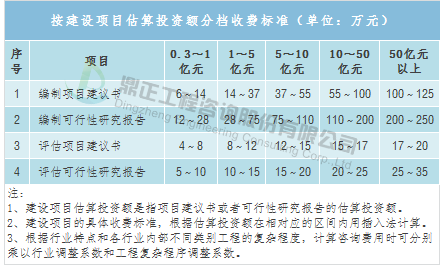 Консультации по инвестиционным решениям включают в себя подготовку предложений по проектам, подготовку технико - экономического обоснования, оценку предложений по проектам, оценку технико - экономического обоснования и т. Д. Плата может быть получена со ссылкой на « Уведомление Государственной комиссии по планированию развития о временных положениях о сборах за консультационные услуги по предварительным работам по строительным проектам» (расчетная цена [1999] 1283), В этом документе предлагается стандарт платы за консультационные услуги по предварительным работам по строительным проектам с объемом инвестиций более 30 млн. юаней, в то время как строительные проекты с объемом инвестиций менее 30 млн. юаней разрабатываются самими провинциями, например, провинция Хубэй установила соответствующий местный стандарт - Циркуляр провинциального бюро цен на установление платы за консультационные работы по предварительным строительным проектам с оценочной суммой инвестиций менее 30 млн. юаней (Конкретная цена на жилье в ЭО № 107), Тарифы рассчитываются путем вставки в пределах соответствующего диапазона на основе расчетной суммы инвестиций.