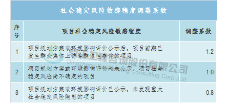 Сборы за консультации по оценке рисков социальной стабильности могут быть основаны на местных тарифных стандартах, таких как Шанхайский местный стандарт - « Временный стандарт платы за консультационные услуги по оценке рисков социальной стабильности для ключевых строительных проектов в Шанхае» (Shanghai Development Reformation Investment [2012] 130), чтобы оценить общий объем инвестиций в качестве базы расчета, в соответствии с различным характером, содержанием и регионом строительного проекта, принять фиксированную ставку в соответствии с оценочной суммой инвестиций.