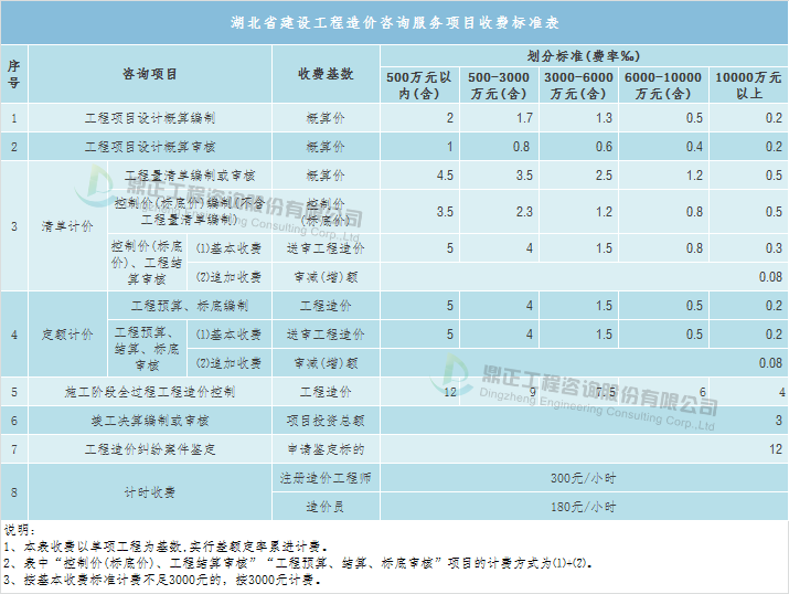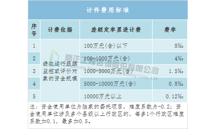 Плата за консультационные услуги по стоимости может быть получена со ссылкой на местные тарифы, такие как местные стандарты провинции Хубэй - « Циркуляр провинциального управления по ценам и жилищному строительству о стандарте оплаты за публикацию консультационных услуг по стоимости проекта» (Постановление о ценах на рабочую силу провинции Хубэй (2012) 149), на основе тарифа в качестве базовой цены, конкретная плата рассчитывается в соответствии с дифференциальной фиксированной ставкой прогрессивного метода.