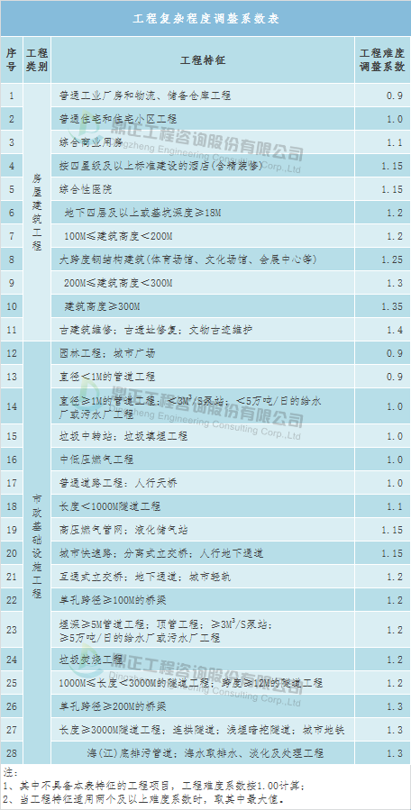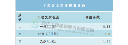 Коэффициент корректировки сложности проекта: 0,8 - 1.2 (конкретный коэффициент корректировки сложности проекта определяется инженерным консалтинговым органом и доверенной организацией по согласованию различных видов работ).